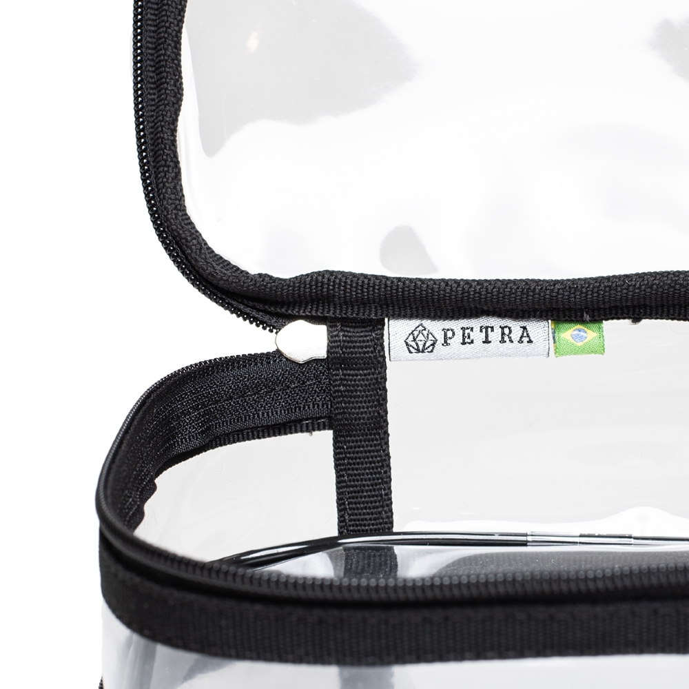 A Necessaire Água Marinha, na cor Preto Translúcido, combina qualidade e beleza.