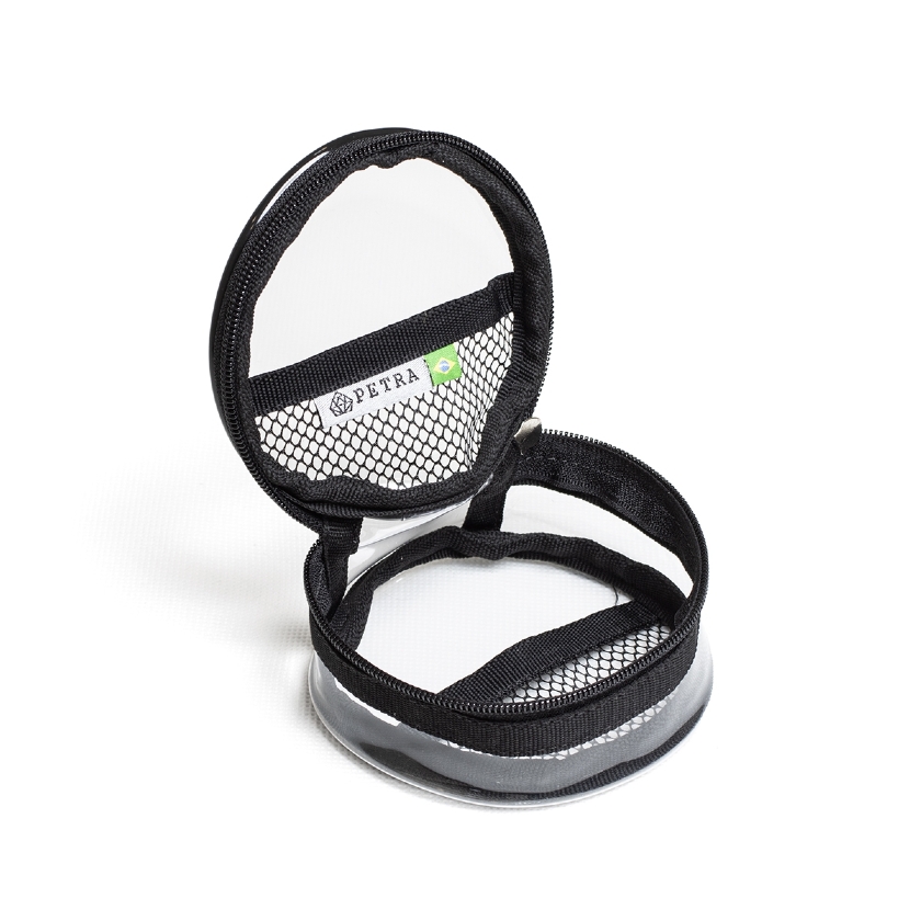 A Necessaire Berilo, na cor Preto Translúcido, é a menor bag da marca e combina praticidade e versatilidade para o dia a dia.