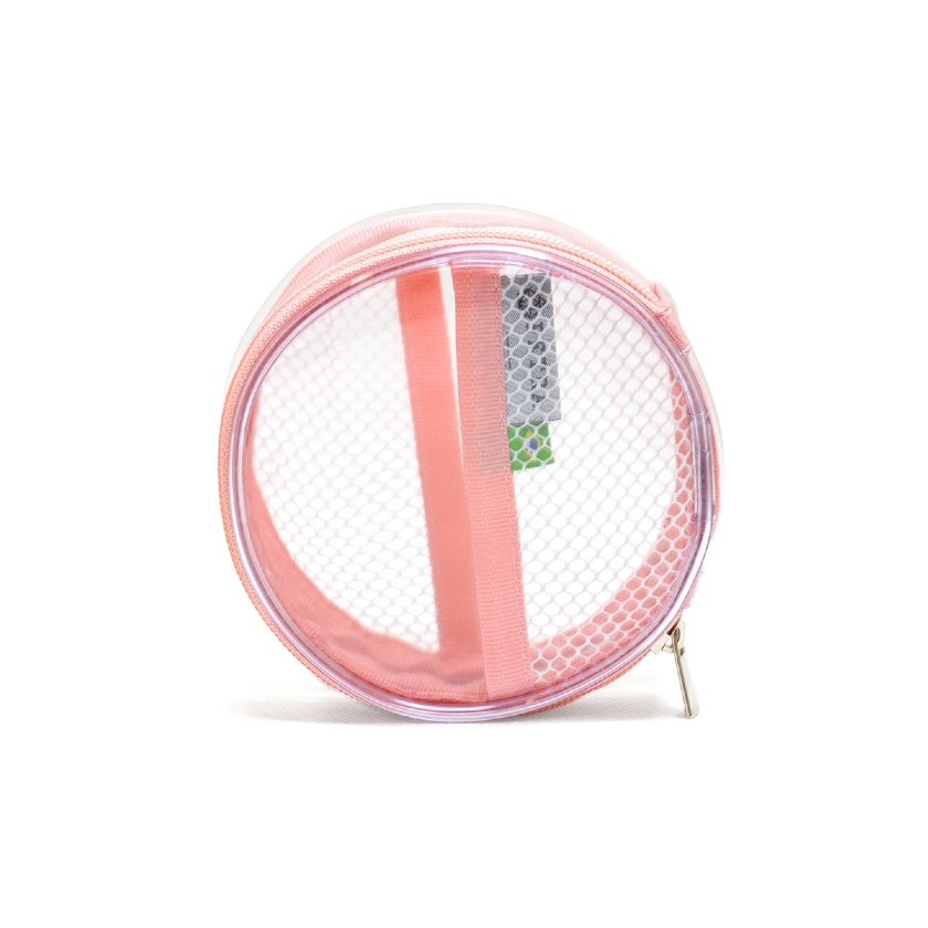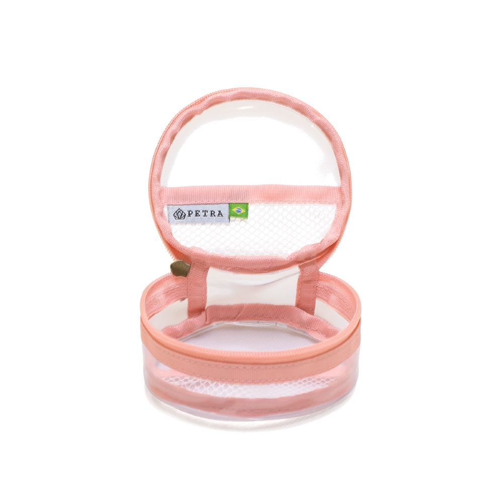 A Necessaire Berilo, na cor Goiaba Translúcida, é a menor bag da marca e combina praticidade e versatilidade para o dia a dia.