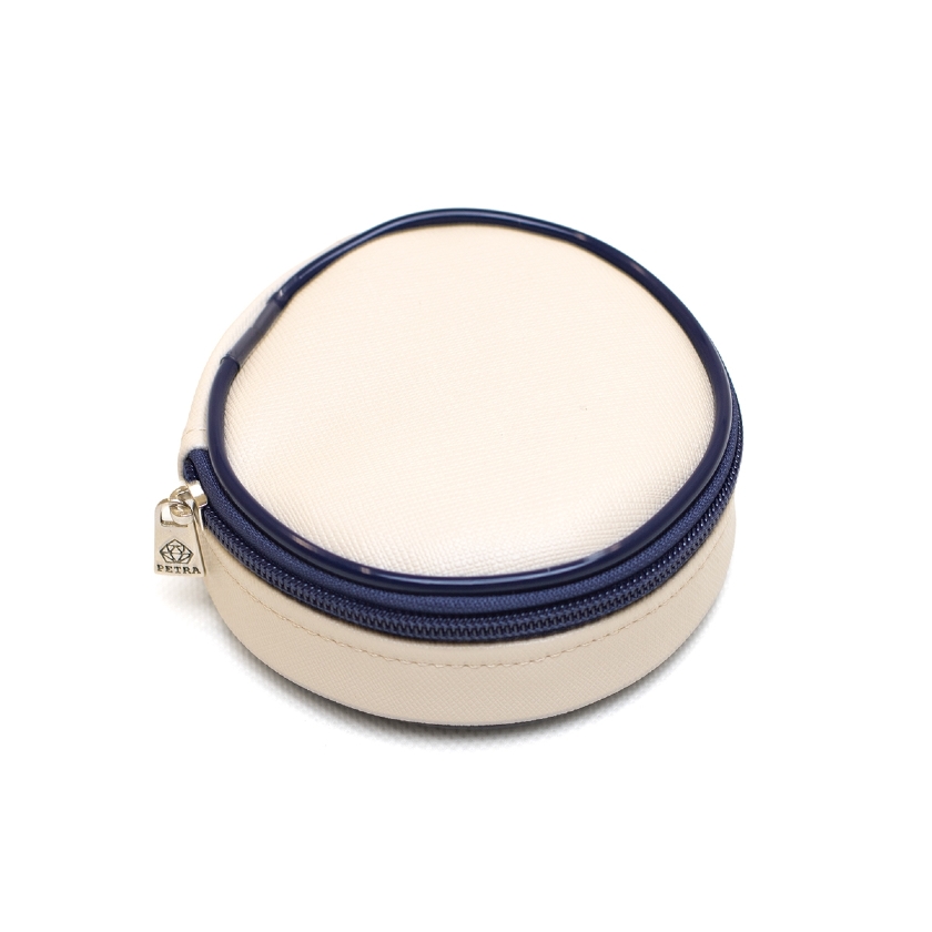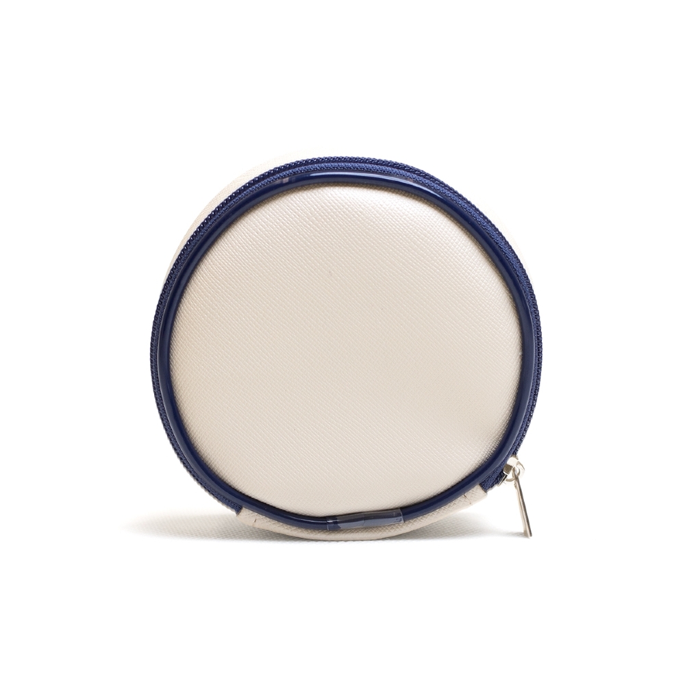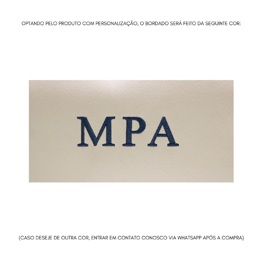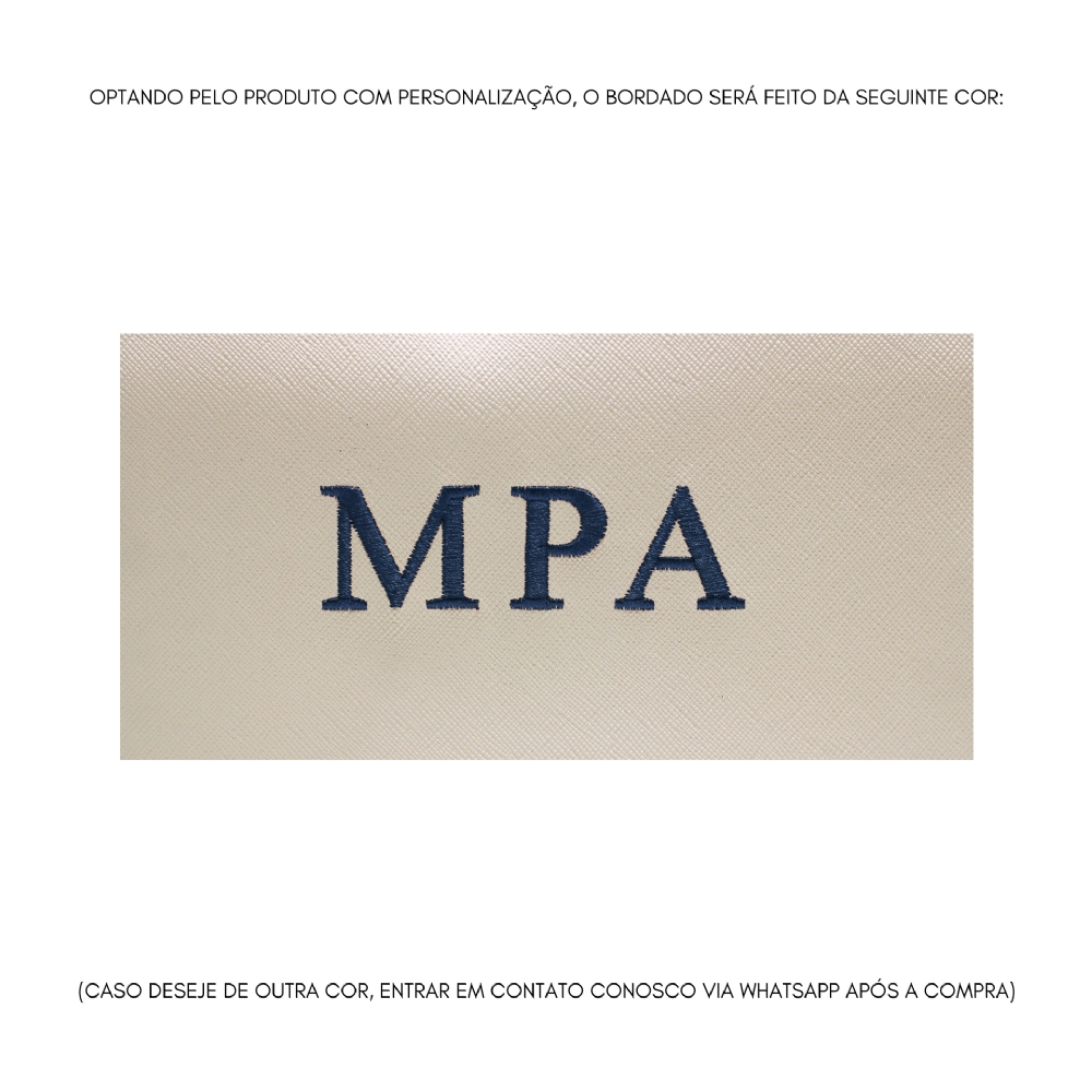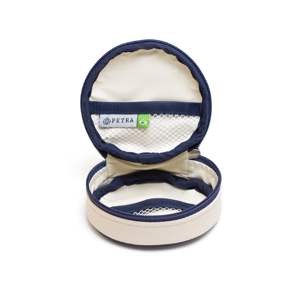A Necessaire Berilo, na cor Bege e Azul Marinho, é a menor bag da marca e combina praticidade e versatilidade para o dia a dia.
