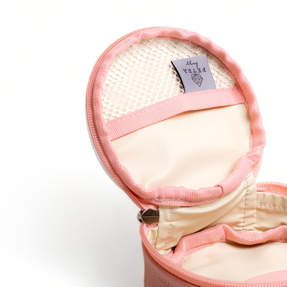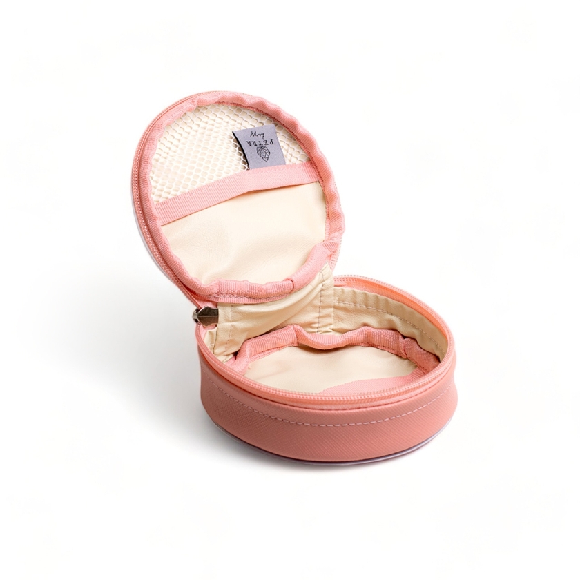 A Necessaire Berilo, na cor Goiaba, é a menor bag da marca e combina praticidade e versatilidade para o dia a dia.