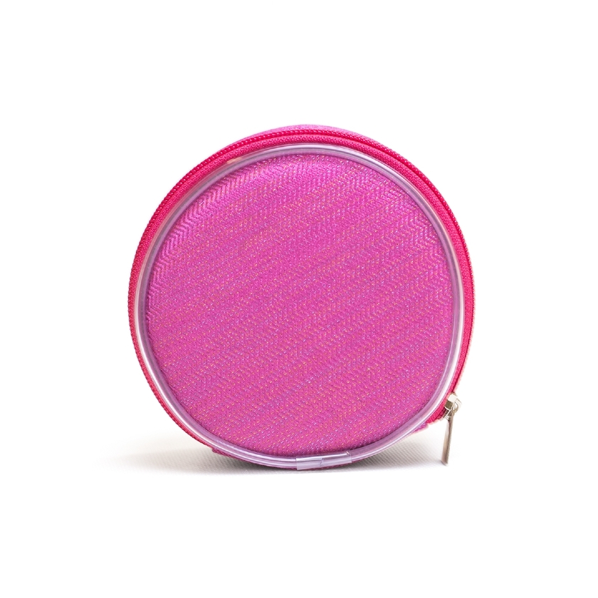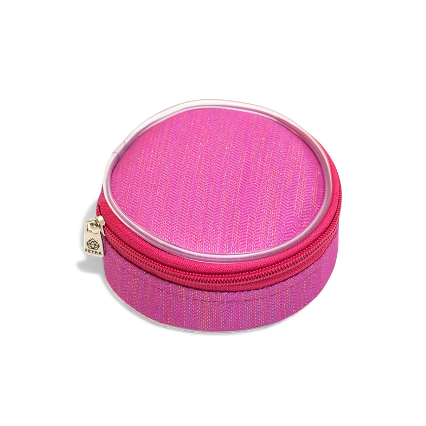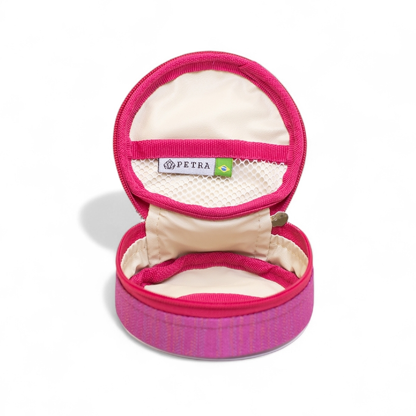 A Necessaire Berilo, na cor Pink Lurex, é a menor bag da marca e combina praticidade e versatilidade para o dia a dia.