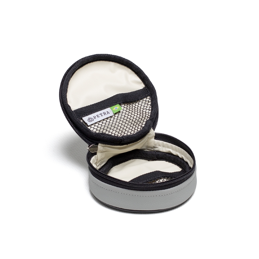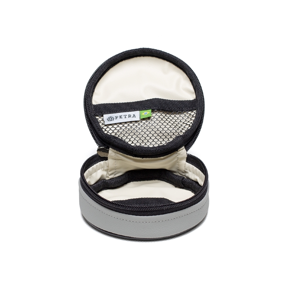 A Necessaire Berilo, na cor Cinza, é a menor bag da marca e combina praticidade e versatilidade para o dia a dia.