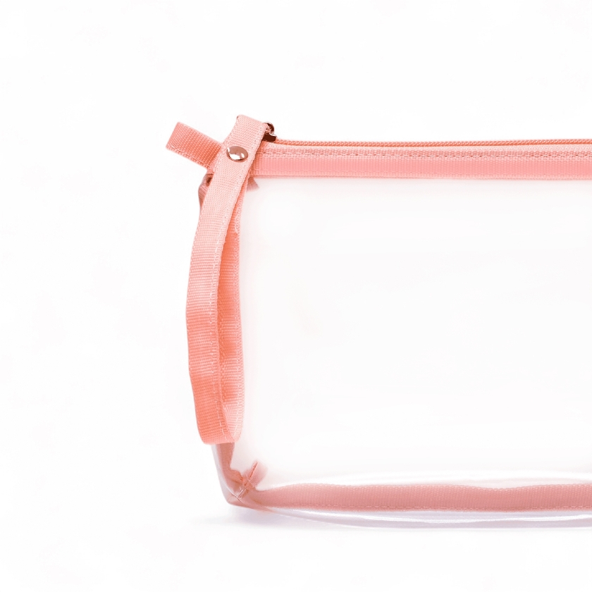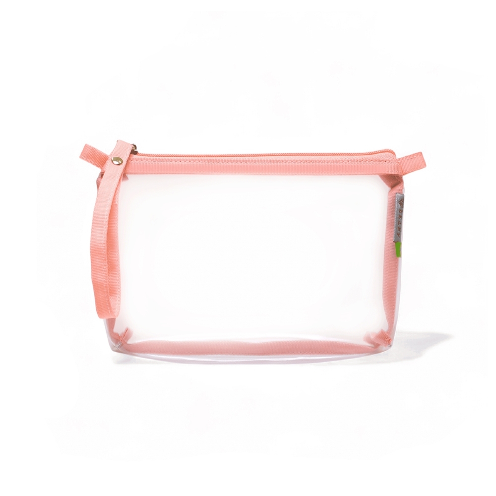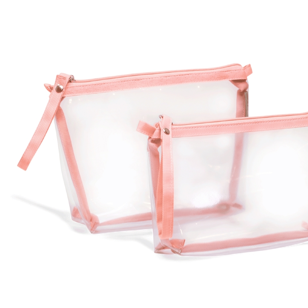 As Necessaires Brilhante, na cor Goiaba Translúcida, formam um combo funcional.