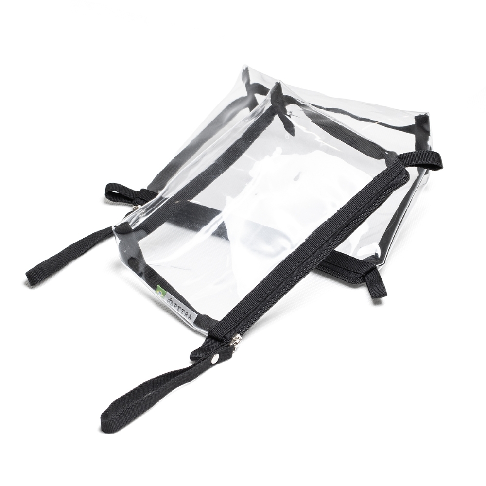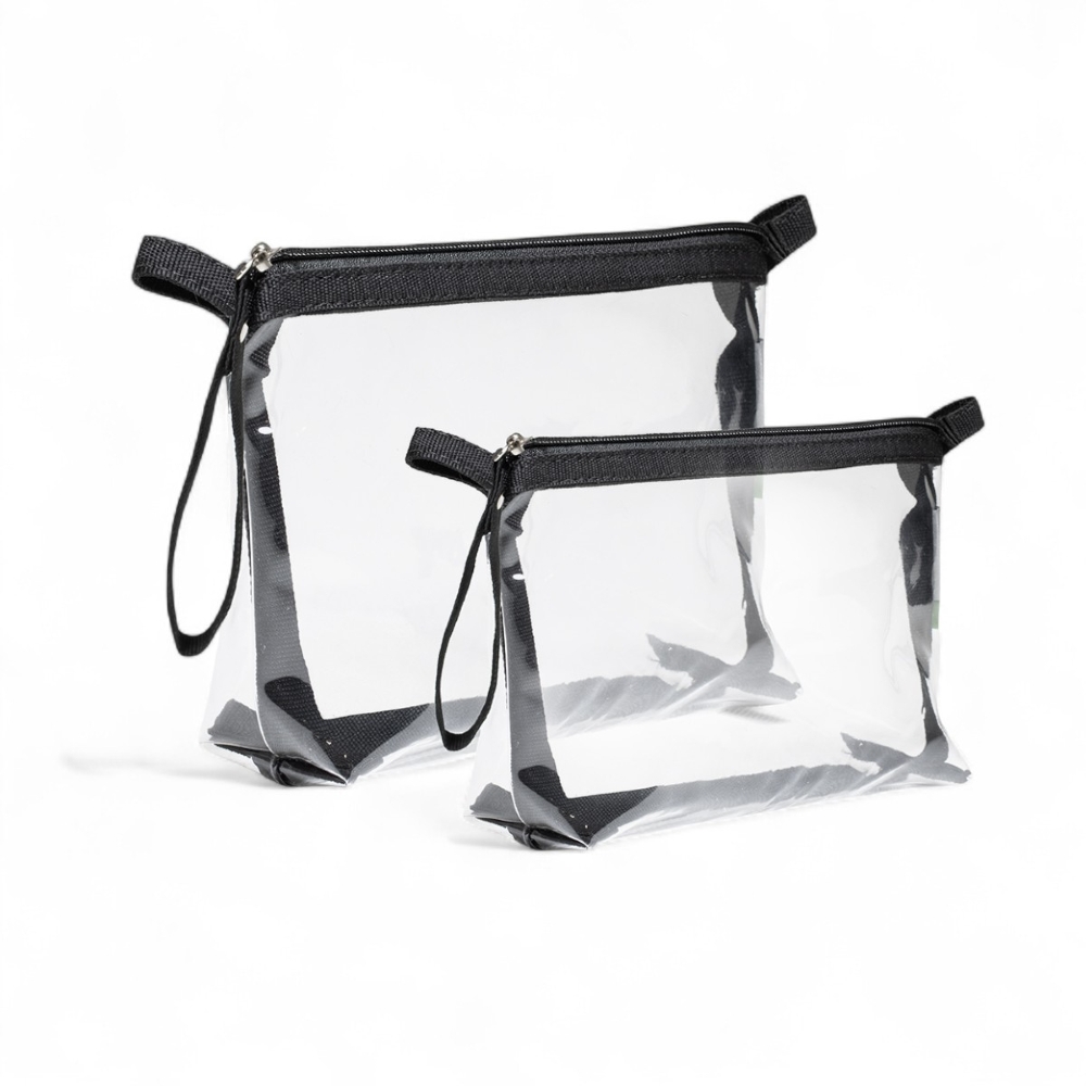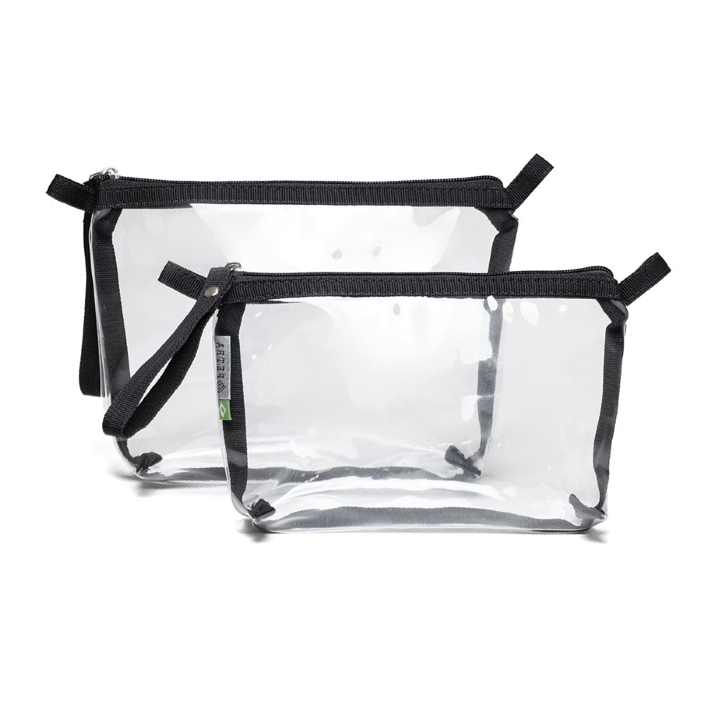 As Necessaires Brilhante, na cor Preto Translúcido, formam um combo funcional.