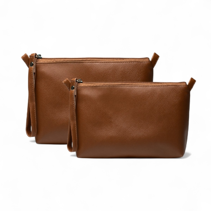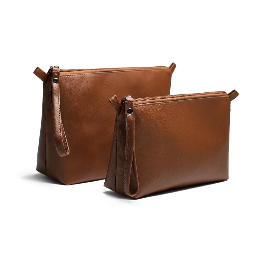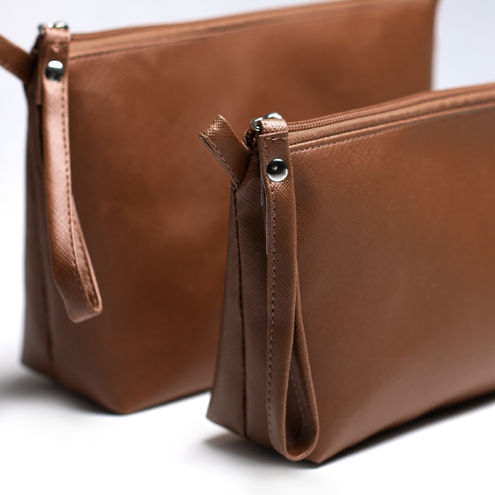 As Necessaires Brilhante, na cor Mocca, formam um combo funcional.