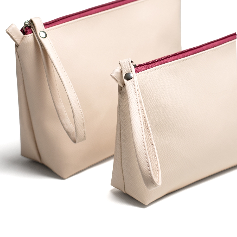 As Necessaires Brilhante, na cor Rosê Marsala, formam um combo funcional.