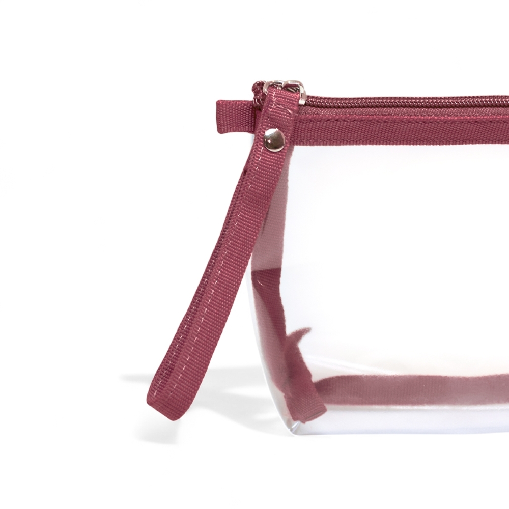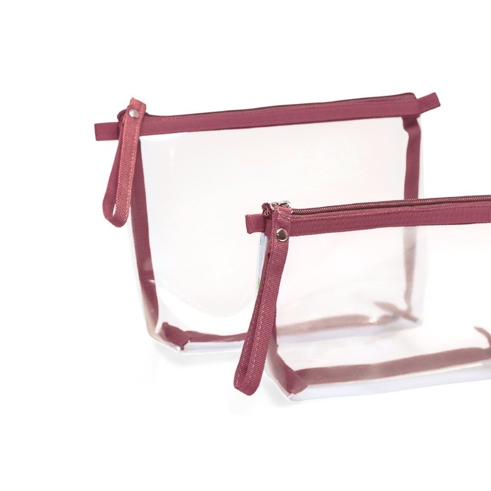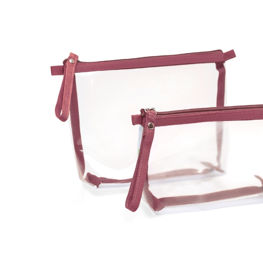 As Necessaires Brilhante, na cor Marsala Translúcido, formam um combo funcional.