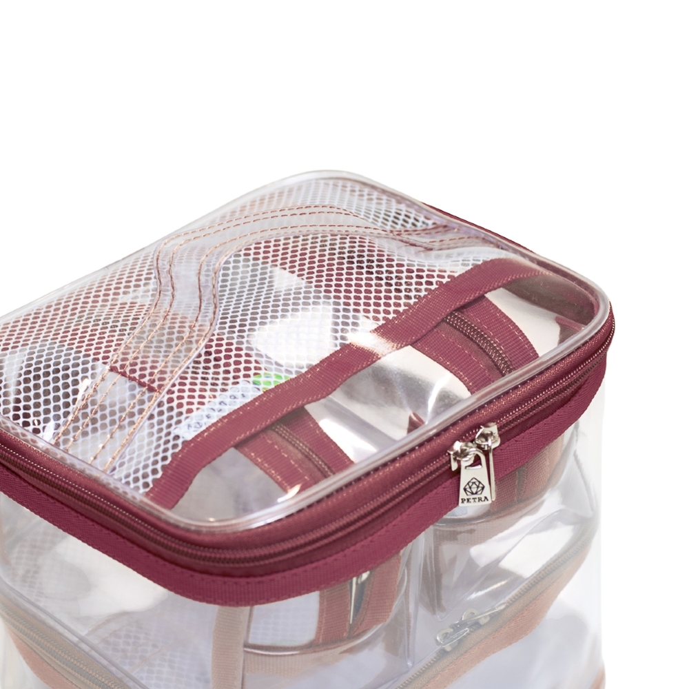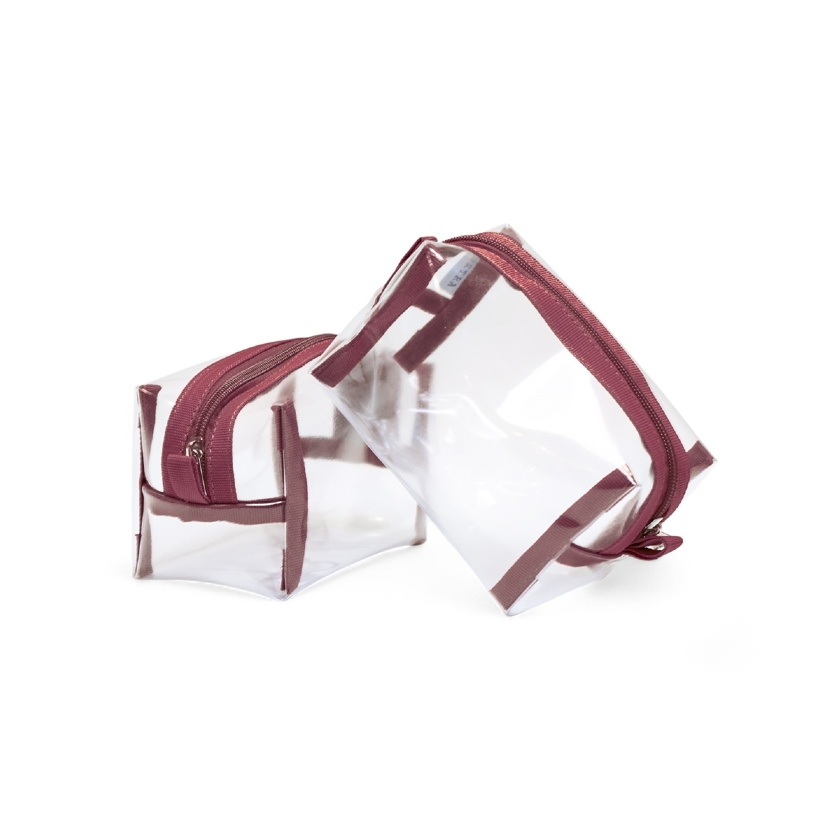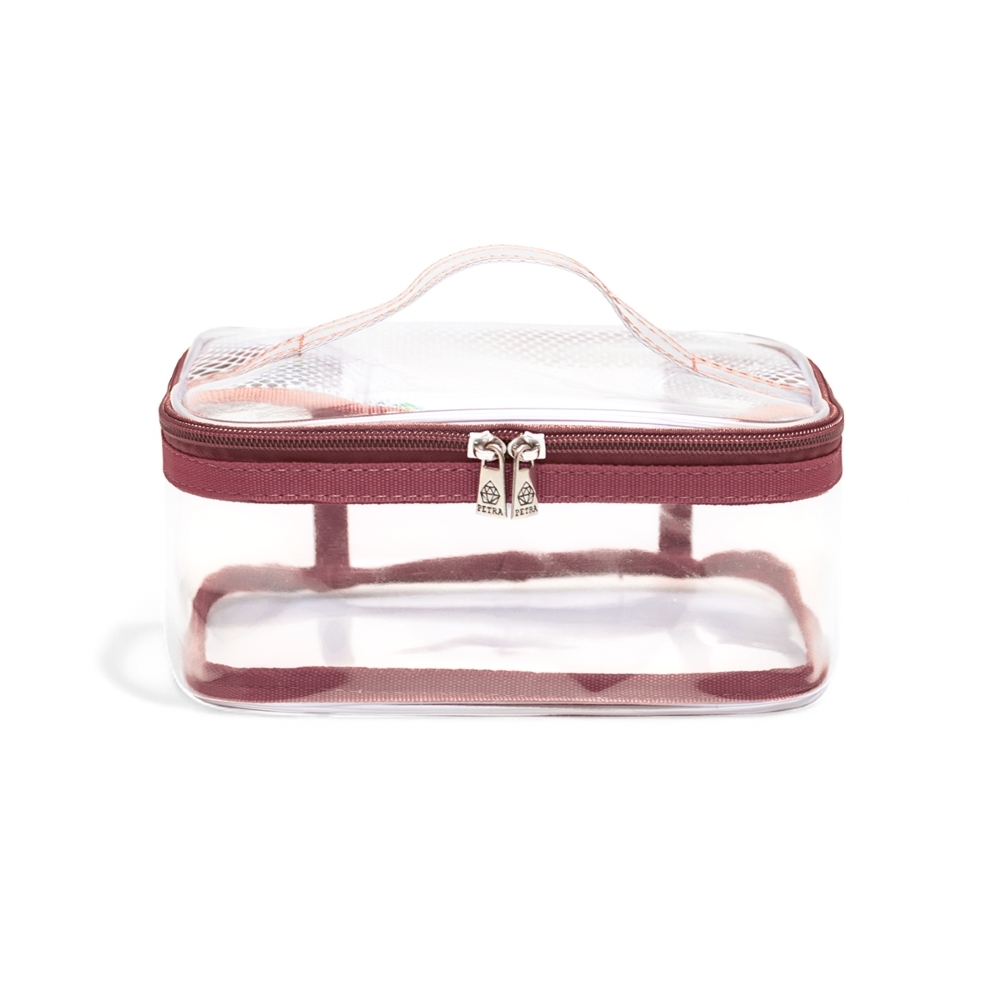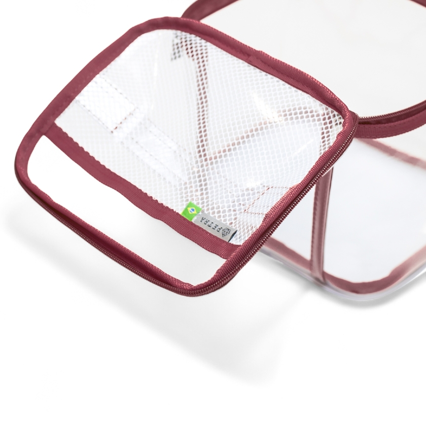 A necessaire Cristal, na cor Marsala Translúcido, combina qualidade e beleza.