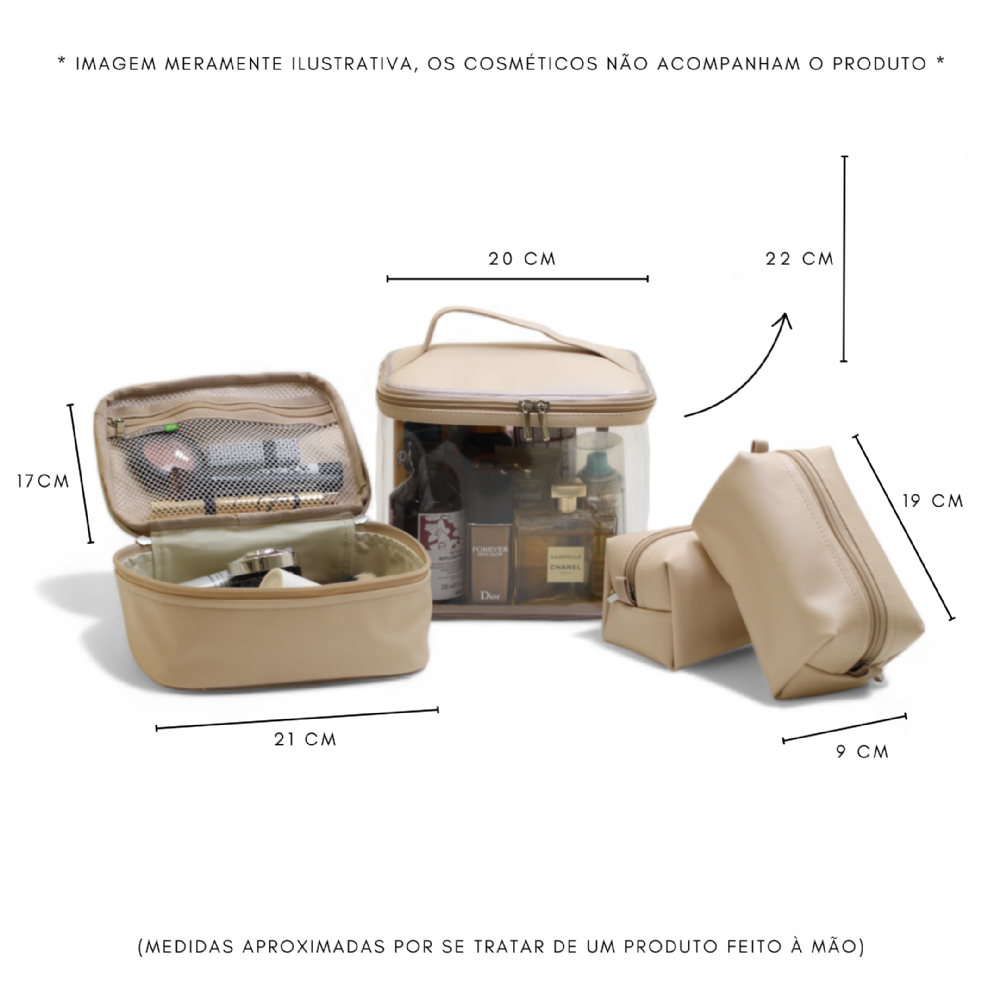 Garantindo que você possa manter seus pertences cuidadosamente organizados, cada box oferece espaço suficiente para armazenar miudezas, enquanto a Cristalina para itens de tamanho médio e compartimento interno em zíper.
