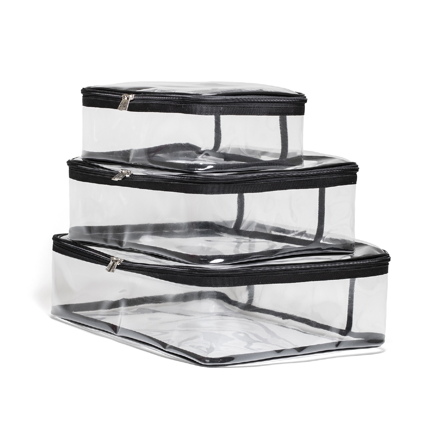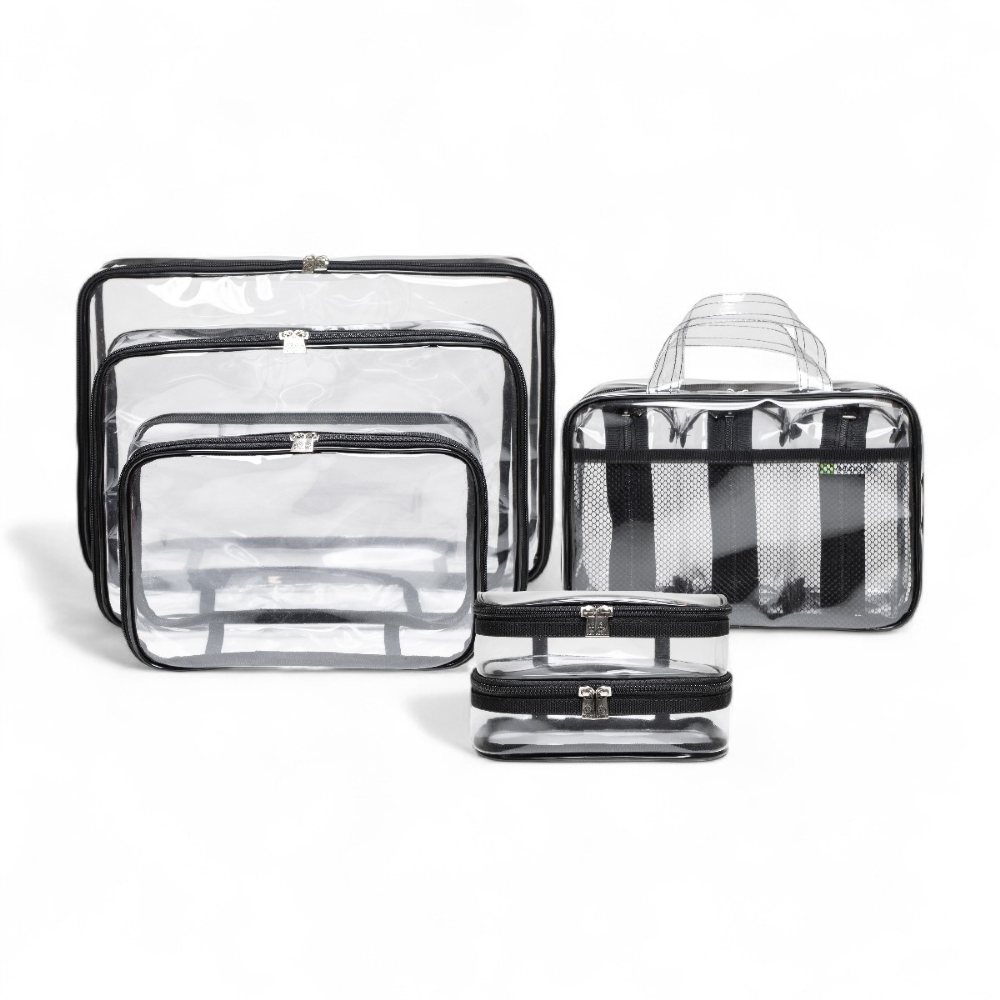 O Kit 1 de Necessaires e Organizadores, na Cor Preto Translúcido, conta o número ideal de peças, o conjunto perfeito para manter as malas organizadas e setorizadas.
