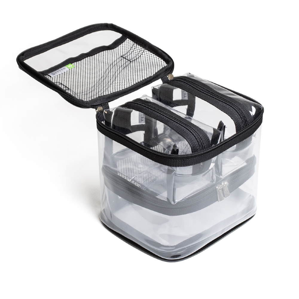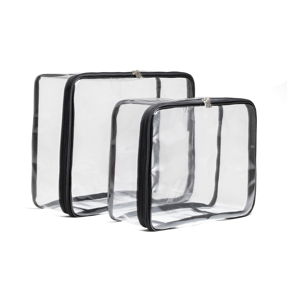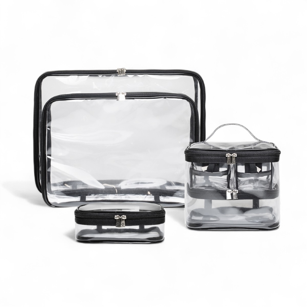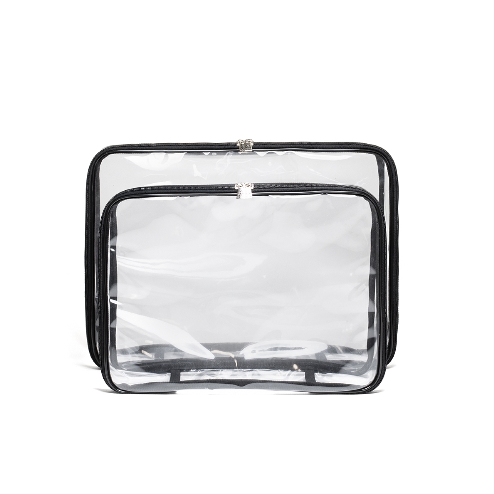 Kit 2 de Necessaires e Organizadores, na Cor Preto Translúcido, conta o número ideal de peças, o conjunto perfeito para manter as malas organizadas e setorizadas.