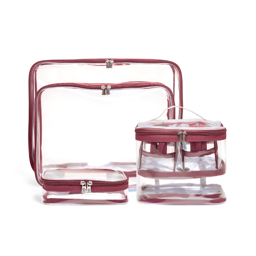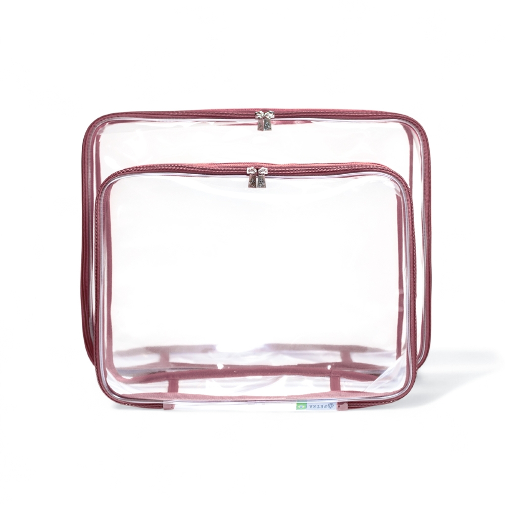 O Kit 2 de Necessaires e Organizadores, na Cor Marsala Translúcido, conta o número ideal de peças, o conjunto perfeito para manter as malas organizadas e setorizadas.