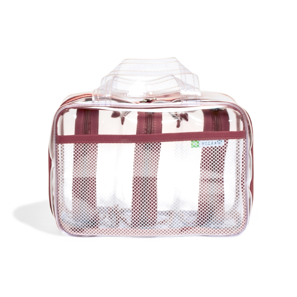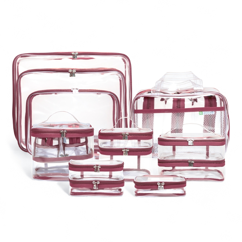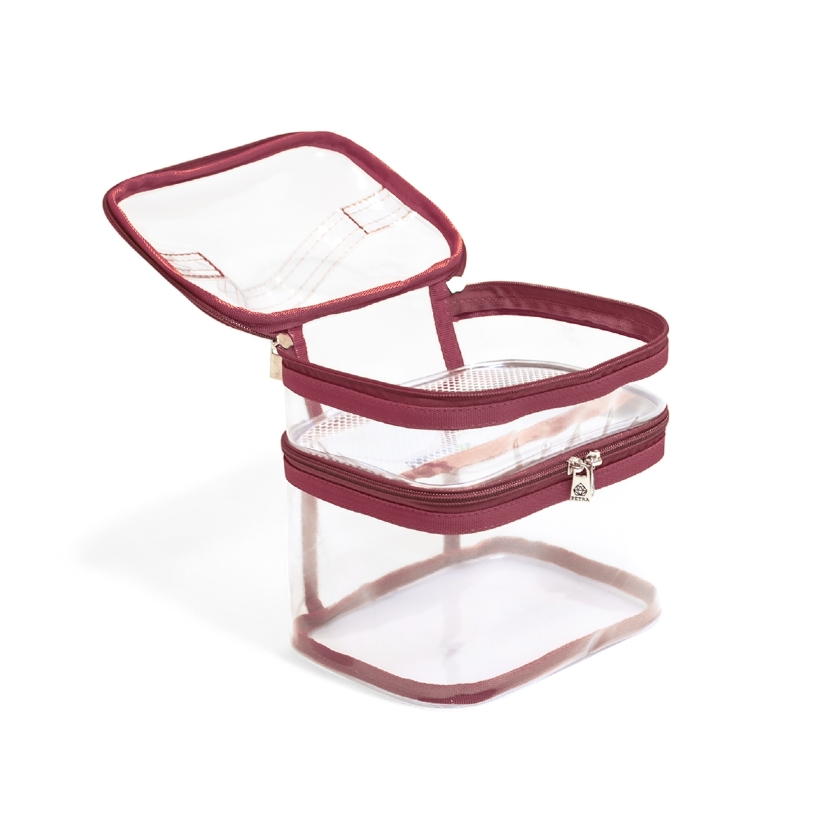 O Kit 4 de Necessaires e Organizadores, na cor Marsala Translúcida, é o mais completo da linha, este conjunto oferece inúmeras peças, garantindo máxima organização e setorização das malas de viagem.