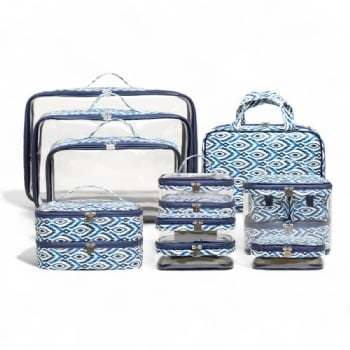 O Kit 4 de Necessaires e Organizadores, na cor Rosa Velho, é o mais completo da linha, este conjunto oferece inúmeras peças, garantindo máxima organização e setorização das malas de viagem.