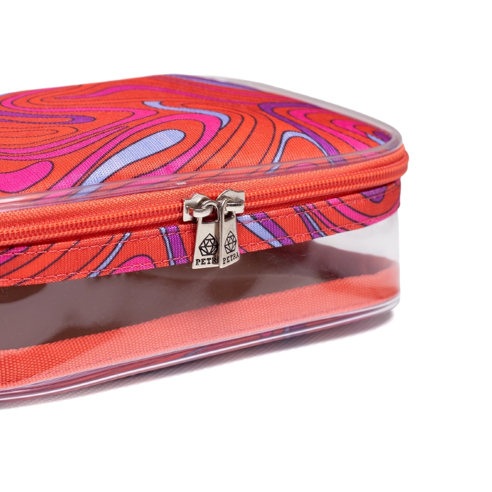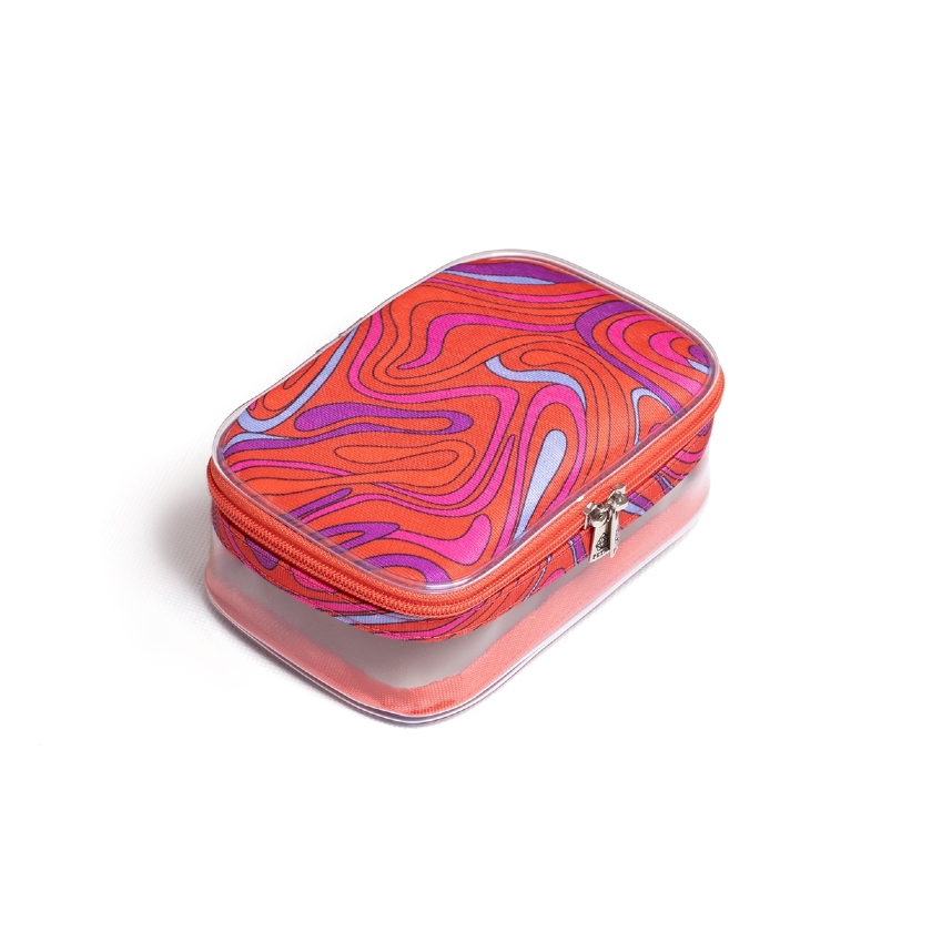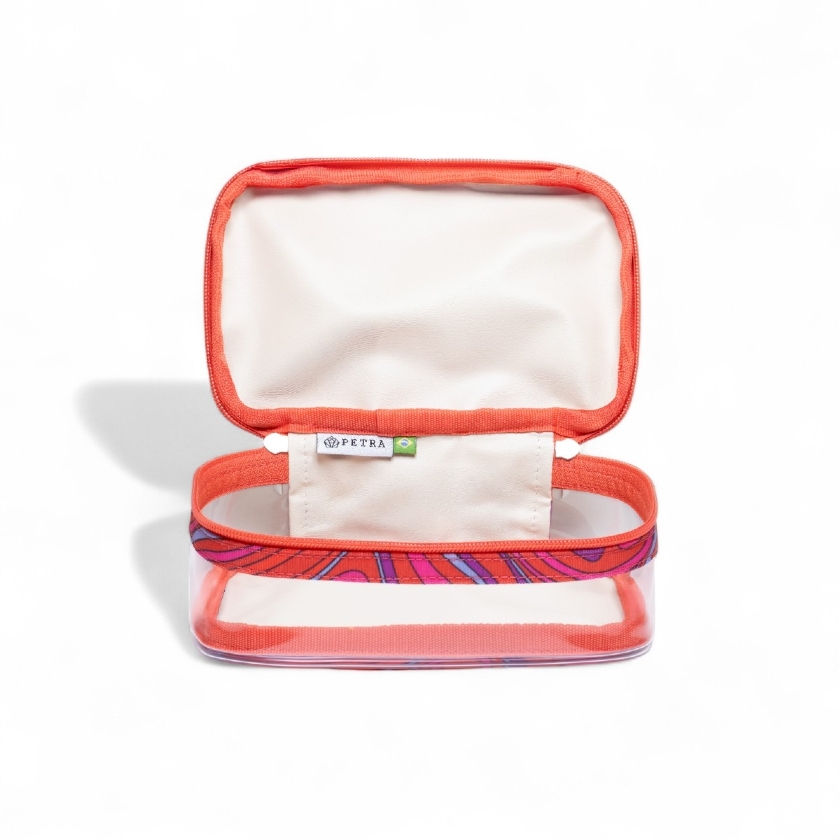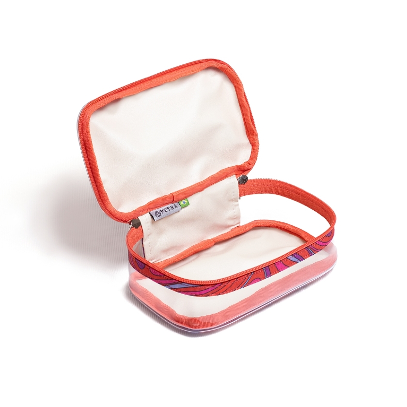 A Necessaire Ônix, na Cor Mistic Candy, possui tamanho compacto a fim de poder ser guardada em qualquer tipo de bagagem.