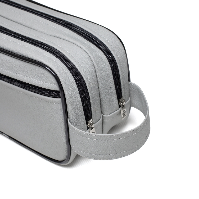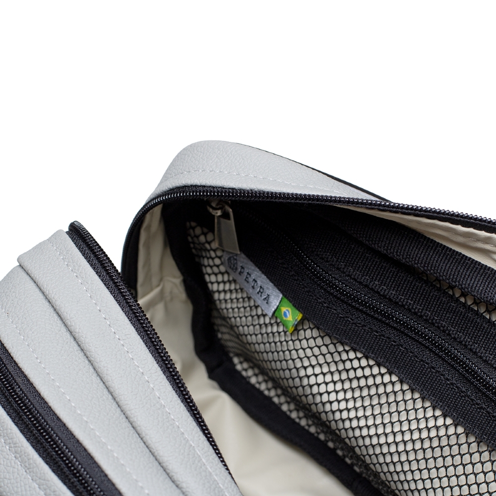 A Necessaire Opala, na cor Cinza, é releitura de um modelo clássico já implementado no mercado. Nossa versão conta com dois compartimentos principais e um lateral, oferecendo uma combinação perfeita de funcionalidade e sofisticação.