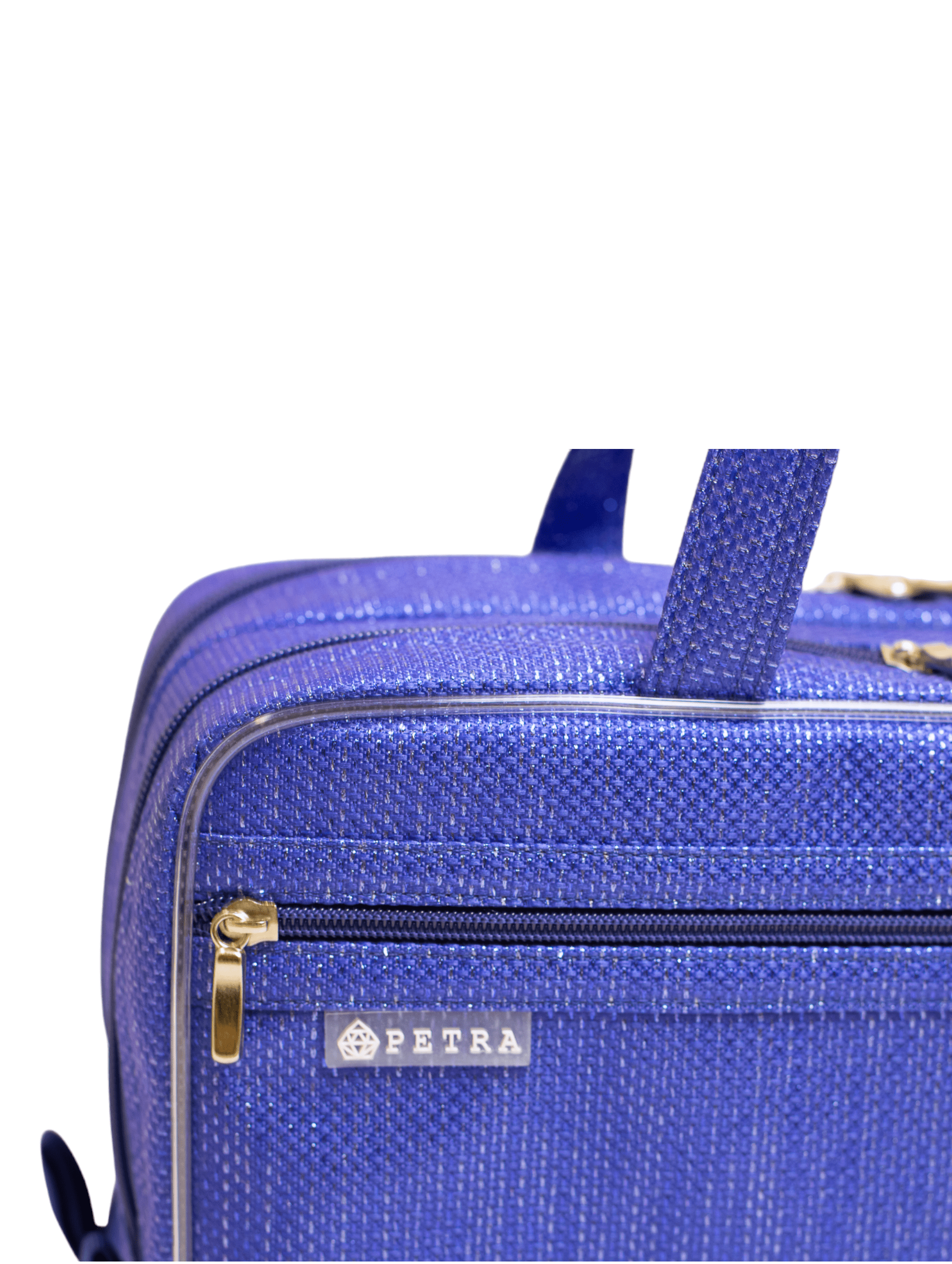 A Necessaire Quartzo, na cor Azul Klein, combina qualidade, beleza e praticidade ao carregar seus itens encaixada na mala de bordo.