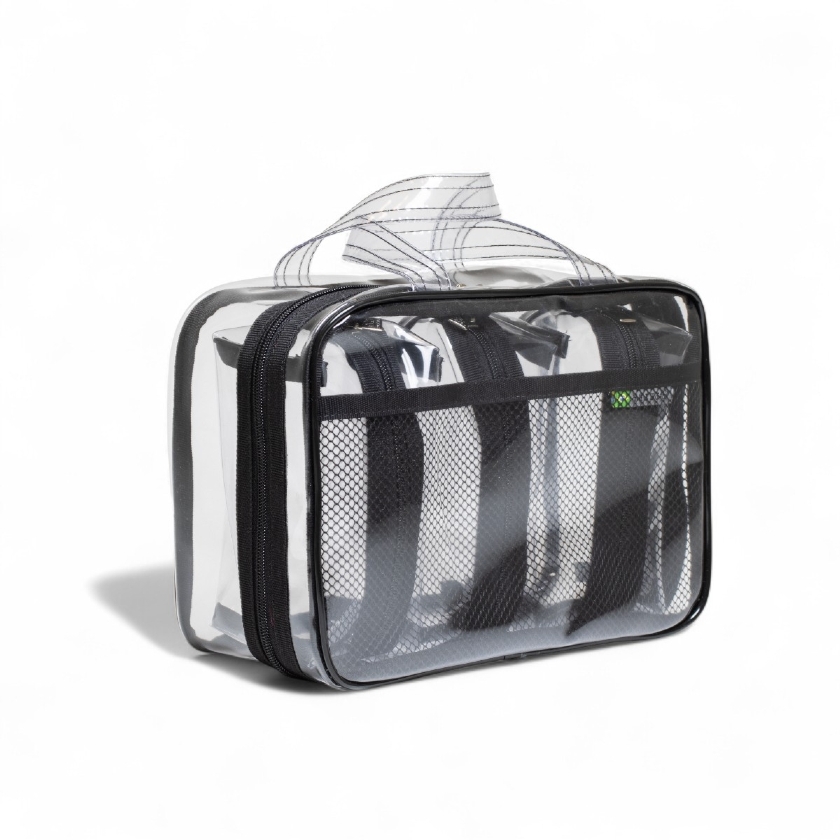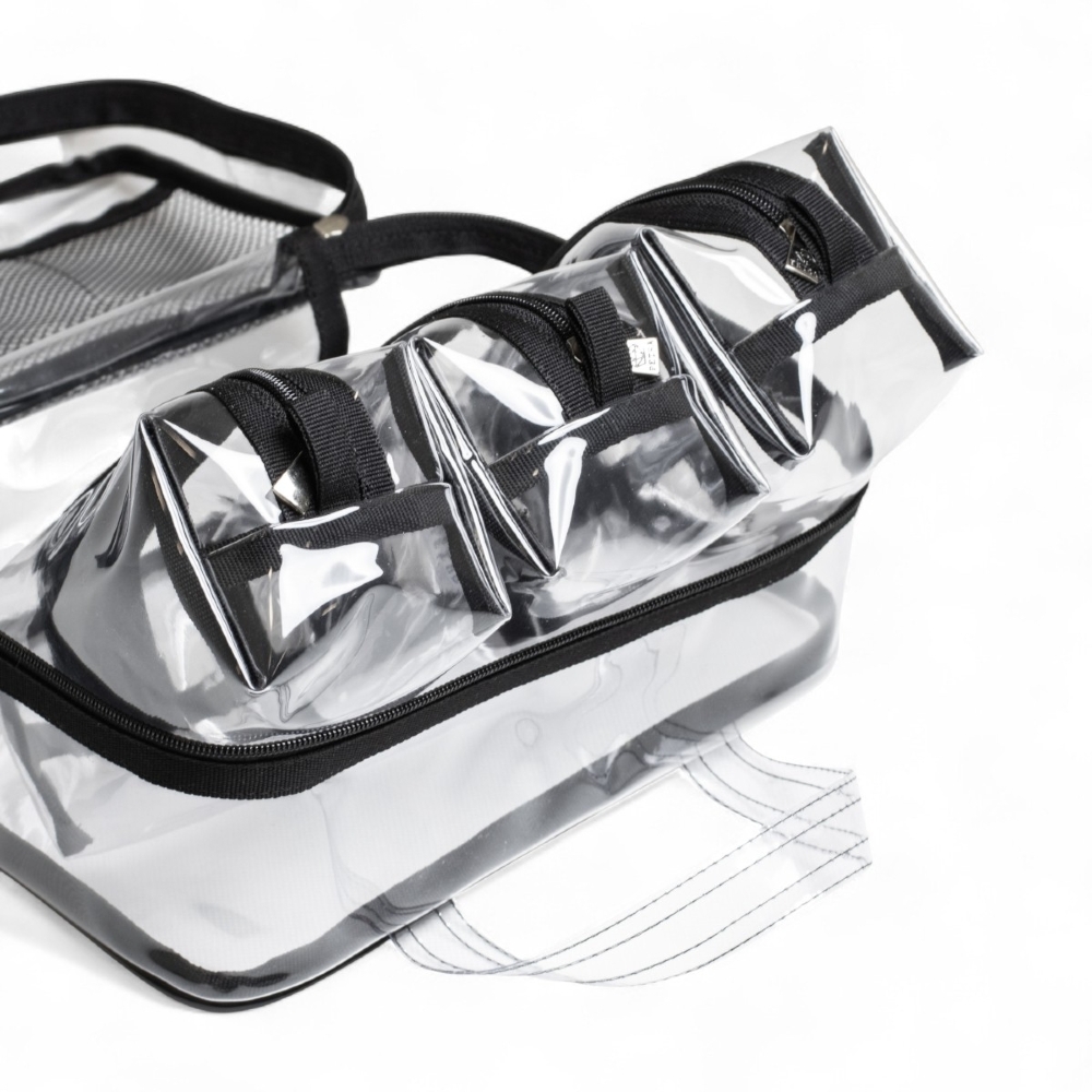A Necessaire Rubi, na Cor Preto Translúcido, é um dos Best Sellers da marca e combina qualidade e beleza.