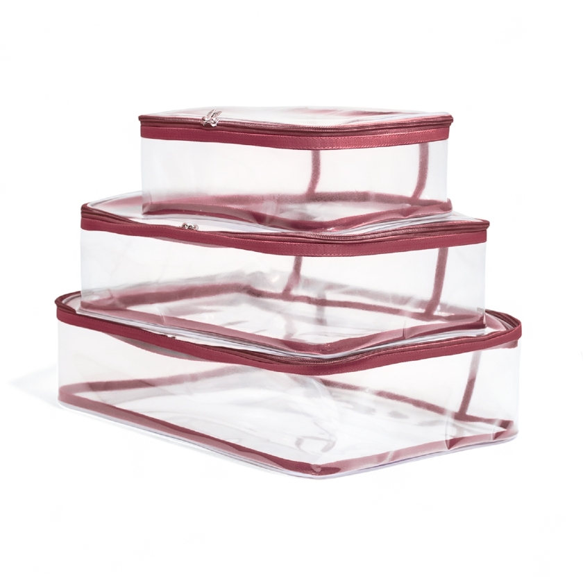 O Organizador Turmalina, na Cor Marsala Translúcido, é uma ótima opção para quem gosta de manter suas coisas setorizadas de forma mais prática e organizada, possibilitando segmentar os looks, evitando o estresse de desmanchar toda a mala para achar as peças desejadas durante as viagens.